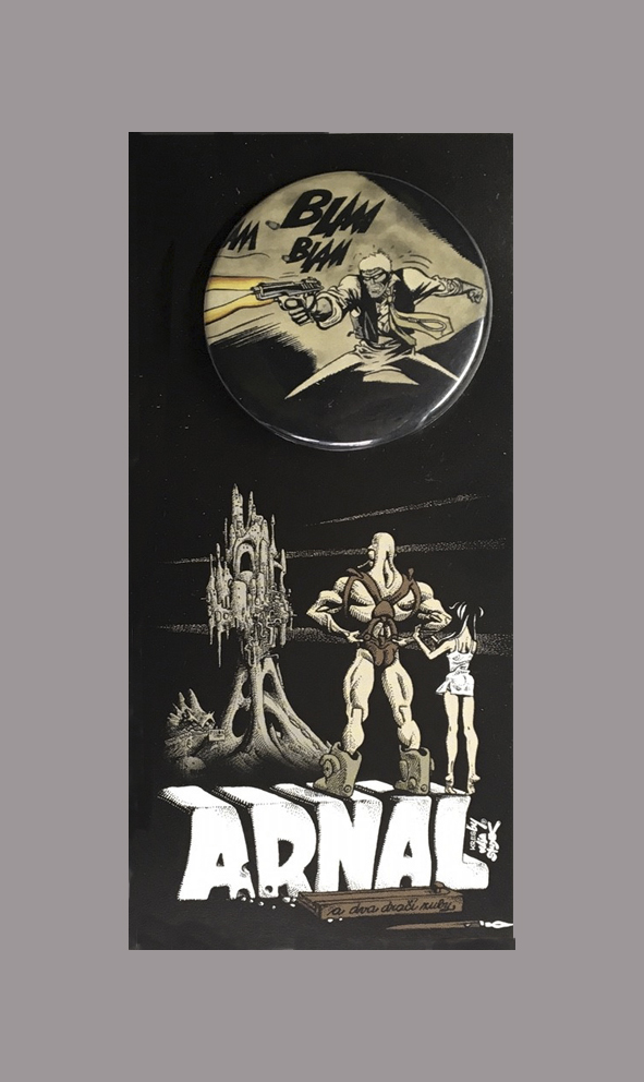Placka s motivem "Blam Blam Blam" od Káji Saudka.