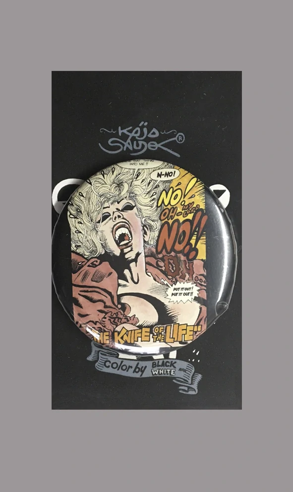 Otvírák na korunkové uzávěry, s motivem "The Knife of the life" od Káji Saudka.